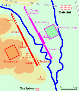 Η σύγκρουση ανέδειξε τις διαφορές τακτικής. Οι Μακεδόνες πολεμούσαν με τον παραδοσιακό ελληνικό τρόπο της φάλαγγας, που χάρισε τη νίκη στον Φίλιππο, στον Αλέξανδρο και στον Πύρρο. Οι Ρωμαίοι αντίθετα, μαχόμενοι για αιώνες κατά στρατών φάλαγγας, υιοθέτησαν και εξέλιξαν τη δική τους μέθοδο: χωρίζοντας τη φάλαγγα σε τμήματα και πολεμώντας κατά αποσπάσματα, που ευνοούσαν τον αγώνα σε ανώμαλο έδαφος, με συνδυασμό ελαφρού και βαρέως πεζικού.