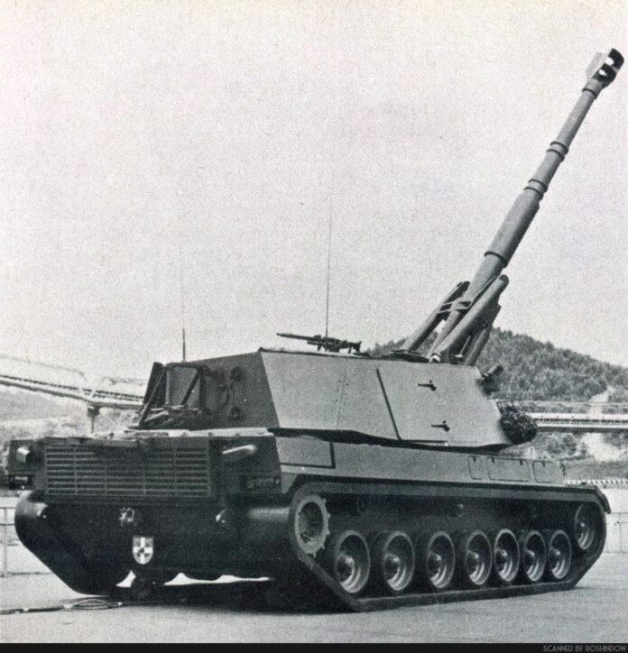 Στην περίπτωση του ευρωπαϊκού αυτού αυτοκινούμενου οβιδοβόλου, δεν υπήρχε άλλη επιλογή από το επίσης κοινοπρακτικής ανάπτυξης FH70, ένα ρυμουλκούμενο «ευρω-πυροβόλο», η ανάπτυξη του οποίου είχε ξεκινήσει λίγα χρόνια πριν, το 1966. Έτσι το FH-0 των 155mm με κάννη 39 διαμετρημάτων και χαλινωτήριο κάννης δύο σταδιών, όφειλε να ενσωματωθεί σε έναν κλειστό πύργο με θωράκιση, που θα προφύλασσε από πυρά όπλων πεζικού και θραύσματα πυροβολικού.